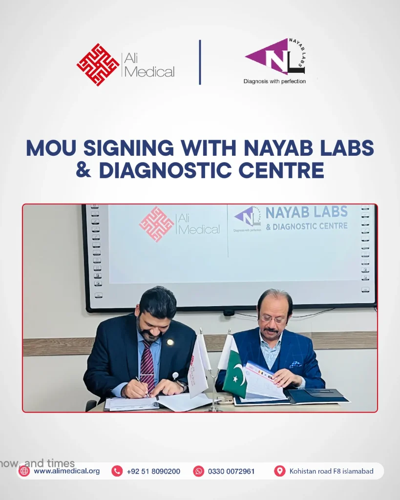 Ali Medical is a State of the Art 100 bedded multi-specialty hospital. It is strategically located at a prime location in sector F-8 Markaz, Islamabad, Pakistan. The hospital Comprises of modern operation theaters, Intensive Care Unit, Neonatal Intensive Care Unit, PICU, HDU, Labor and Delivery Rooms.
